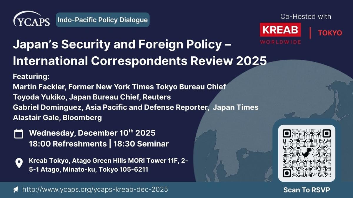 YCAPS and Kreab Tokyo - Indo-Pacific Policy Dialogue - Wednesday, 10 December 2025, 18:00 (Tokyo)