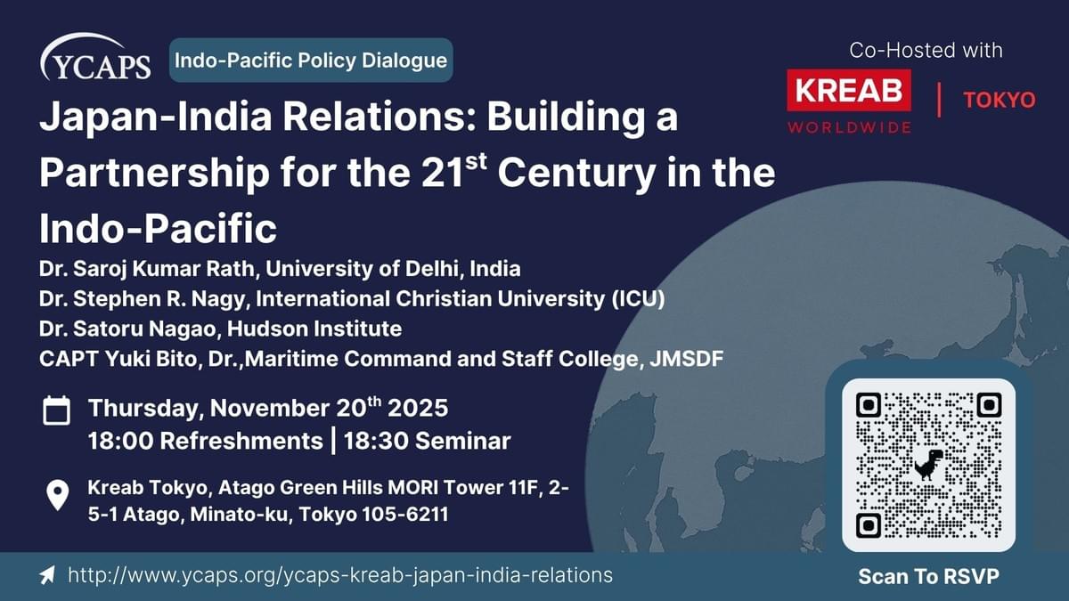YCAPS and Kreab Tokyo - Indo-Pacific Policy Dialogue - Thursday, 20 November 2025, 18:00 (Tokyo)